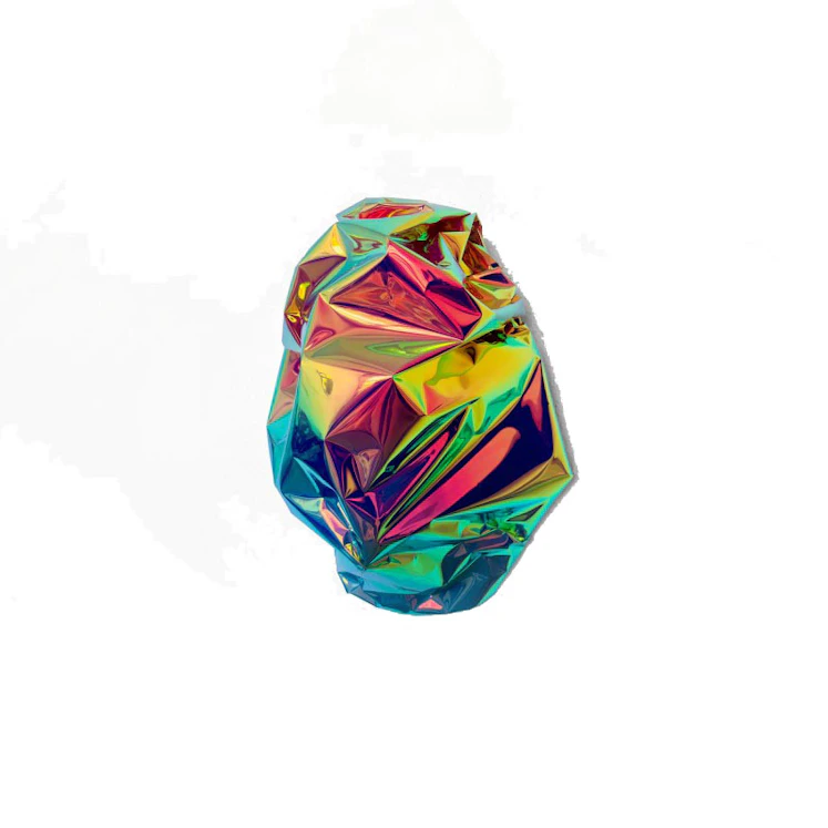 2025, Hout, holografisch pvc, dichroic film en acrylverf