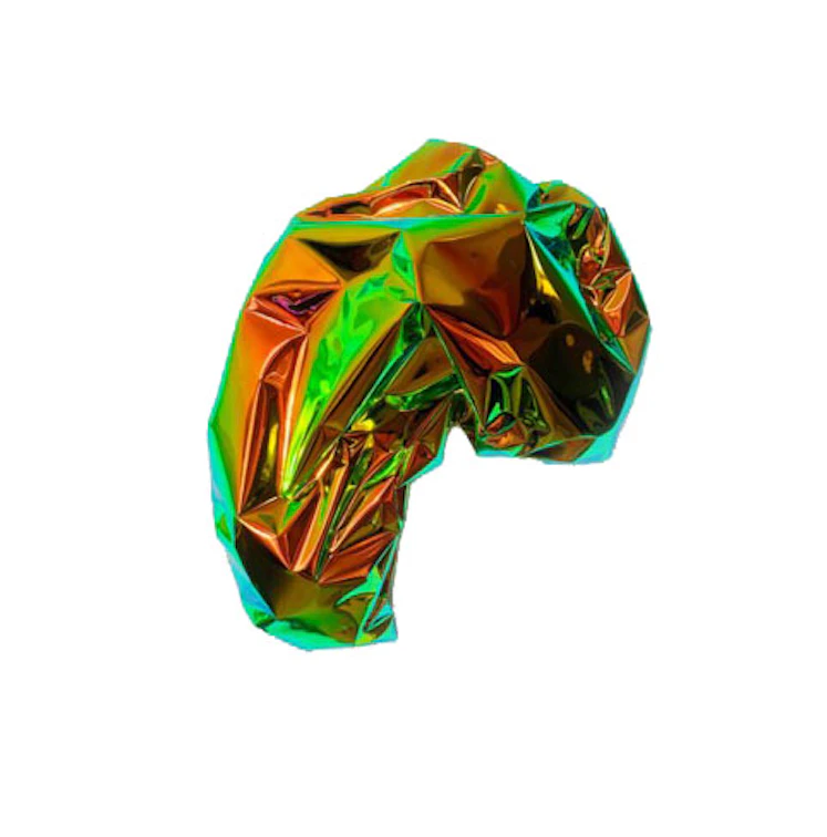2025, Hout, Holografisch pvc, dichroic film en acrylverf