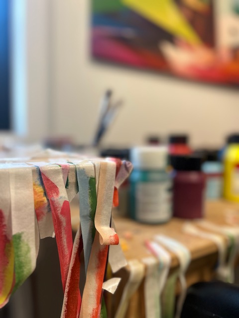 Ik schilder vaak met muziek op de achtergrond, vooral metalcore (muziekgenre dat heavy metal en punk combineert). Het klinkt misschien vreemd, maar voor mij is die energie in de muziek een soort ritme dat me helpt om me volledig te concentreren. De intensiteit van het genre brengt een zekere rust in mijn proces. Het helpt me om de focus te behouden en om de emoties in mijn werk beter over te brengen. Soms wissel ik het af met klassieke muziek of techno. En af en toe luister ik naar podcasts over filosofie of geschiedenis.