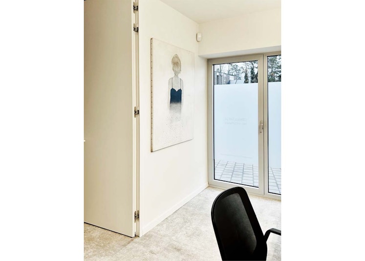 De hier getoonde afbeeldingen geven een beeld van het advocatenkantoor dat door Bernice werd getransformeerd met zorgvuldig geselecteerde kunstwerken: rustig, doordacht en visueel verfijnd. De kunst is niet alleen decoratie, maar maakt deel uit van de werkplek.
