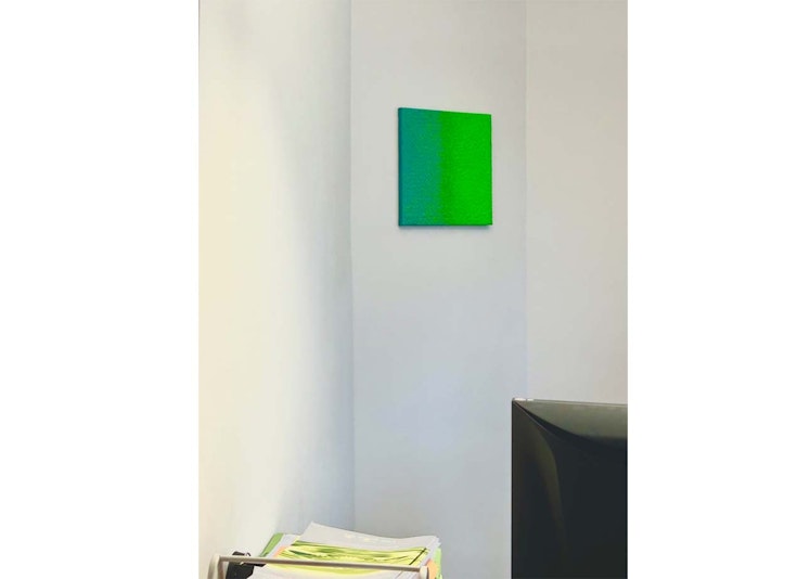 A small yet powerful green painting brings fresh energy to the office of a notarial staff member. This work is by Martha Scheeren and adds a subtle, uplifting atmosphere to the space.
